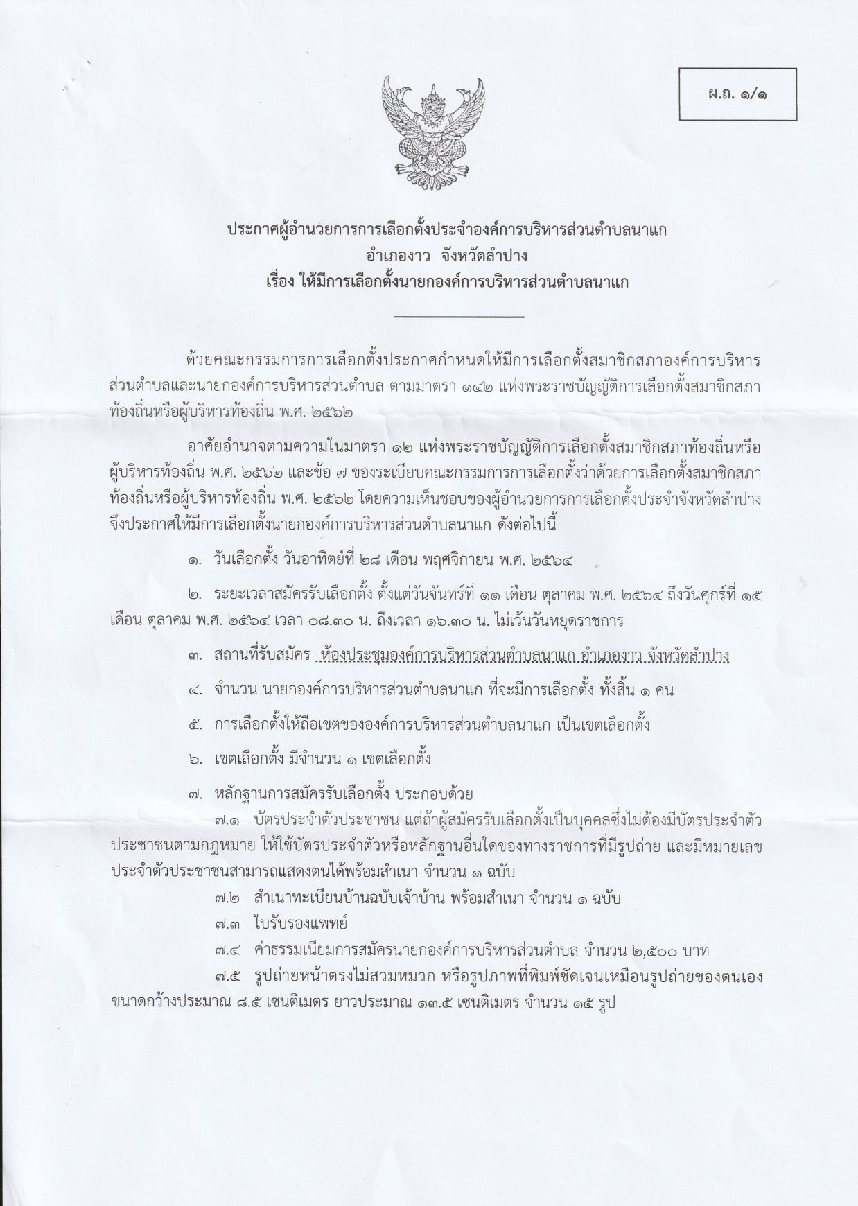 ประกาศ ให้มีการเลือกตั้งนายกองค์การบริหารส่วนตำบลนาแก