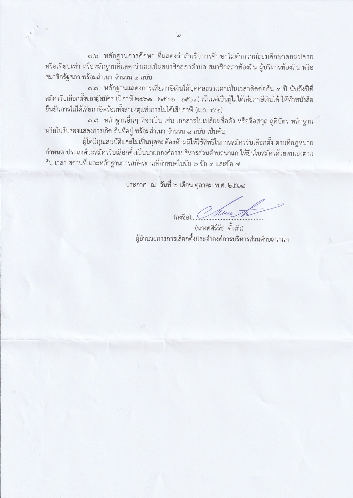 • ประกาศ ให้มีการเลือกตั้งนายกองค์การบริหารส่วนตำบลนาแก