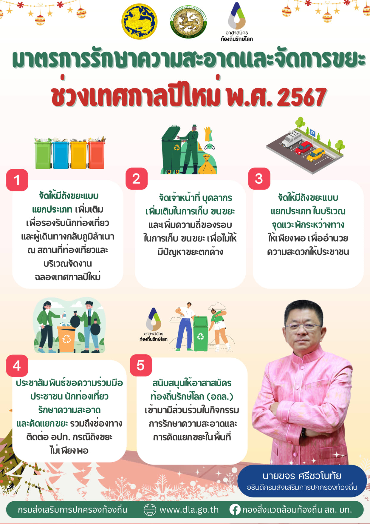 มาตรการรักษาความสะอาดและการจัดการขยะช่วงเทศกาลปีใหม่ พ.ศ. 2567 0 Share FacebookTwitterGoogle+ReddItWhatsAppPinterestEmail