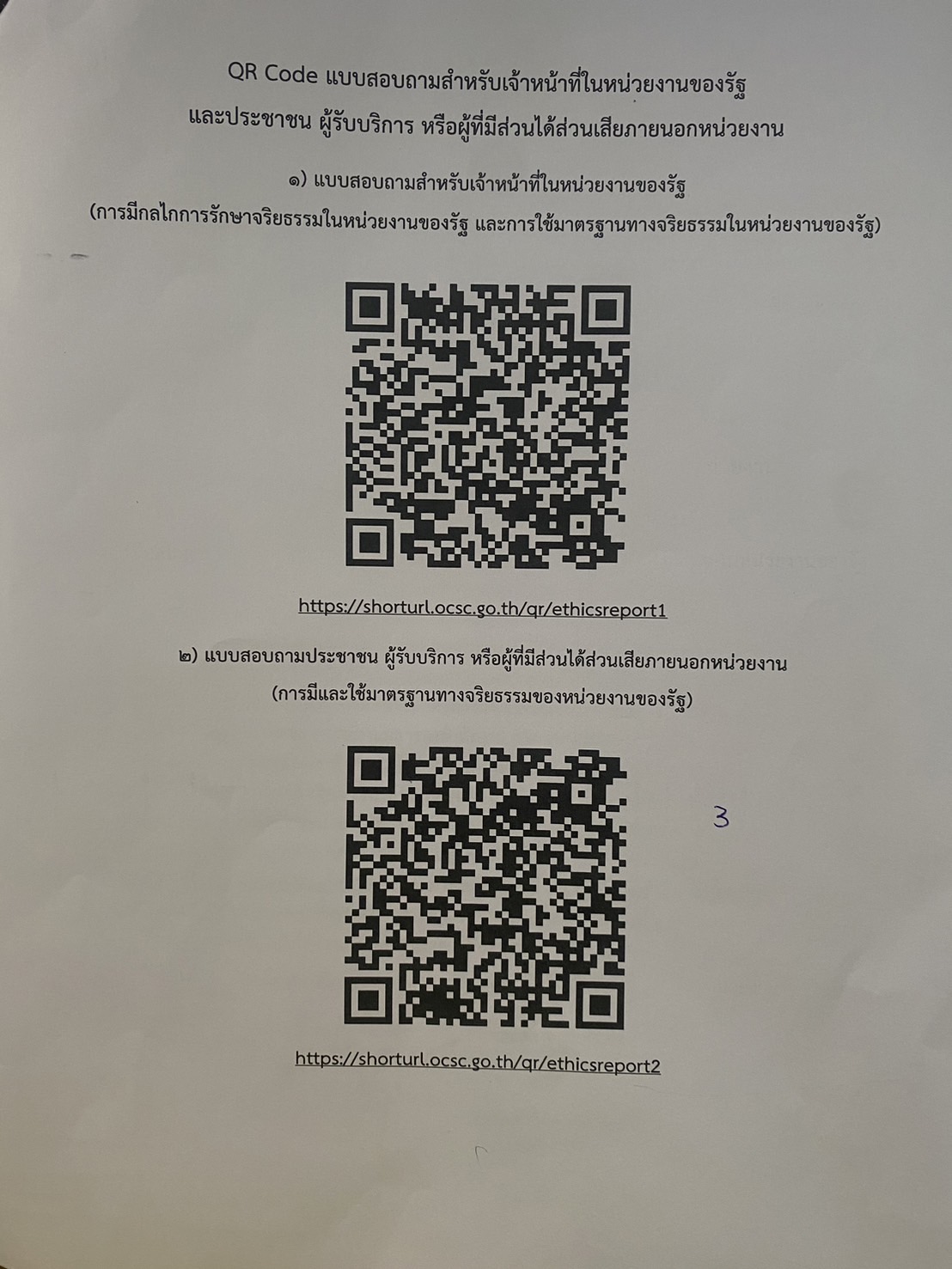 ขอเชิญเจ้าหน้าที่ในหน่วยงาน และประชาชนผู้รับบริการ หรือผู้มีส่วนได้เสียภายนอก ตอบแบบสอบถามทางจริยธรรม