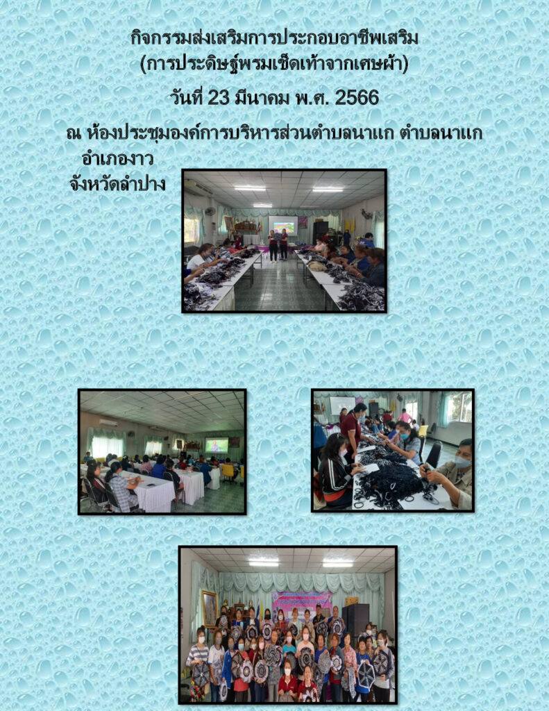 กิจกรรมส่งเสริมการประกอบอาชีพเสริม (การประดิษฐ์พรมเช็ดเท้าจากเศษผ้า) ประจำปี 2566