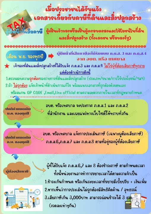 แจ้งข่าวสารเกี่ยวกับภาษีที่ดินและสิ่งปลูกสร้าง ประจำปี พ.ศ.2569 #กองคลัง งานจัดเก็บรายได้ อบต.นาแก โทร.0542614223