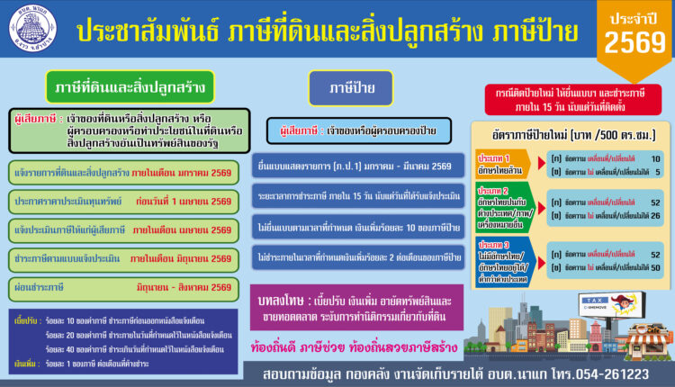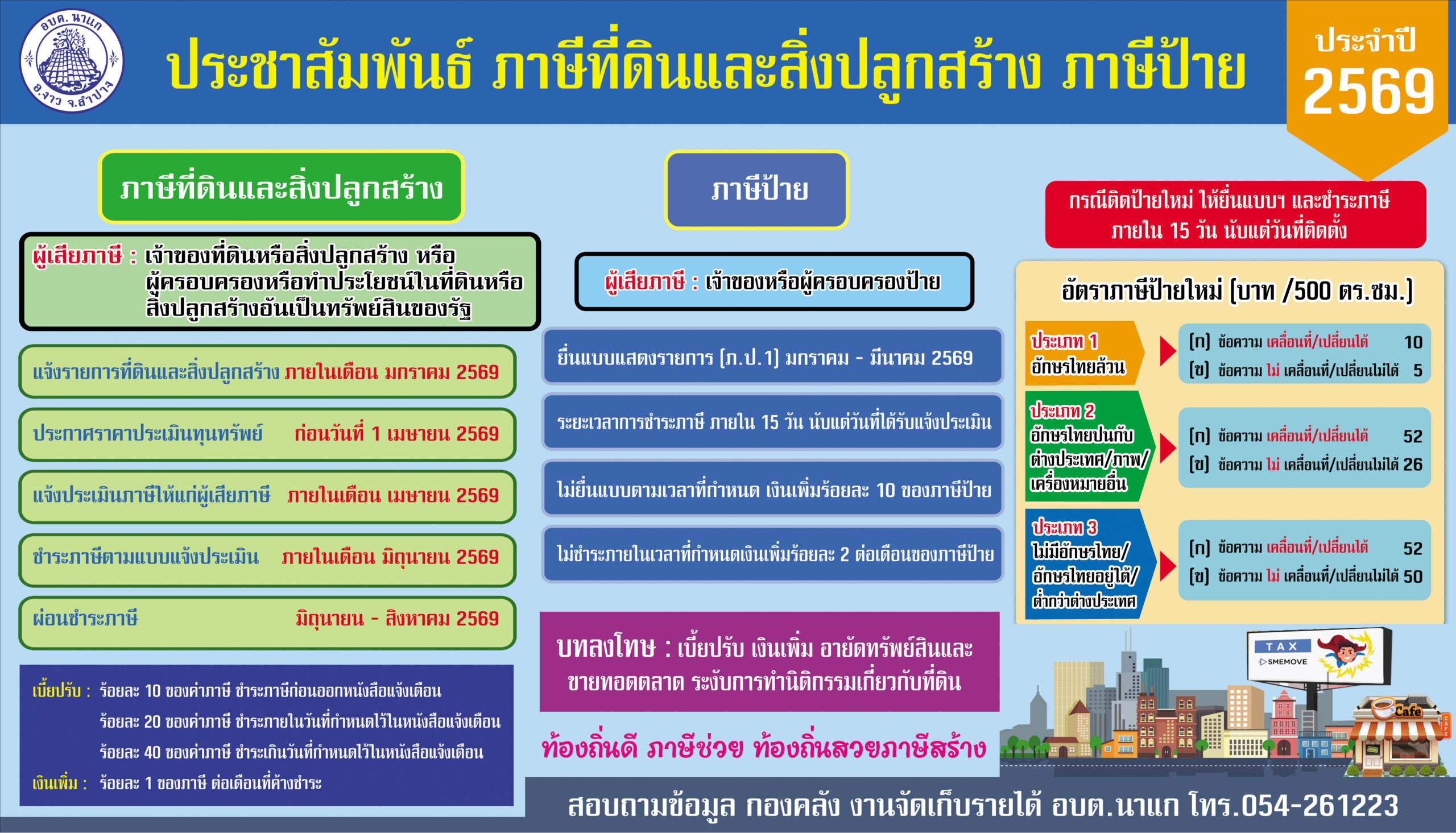 ประชาสัมพันธ์การจัดเก็บภาษีรายได้ อบต.นาแก ประจำปี พ.ศ.2569 0 Share FacebookTwitterGoogle+ReddItWhatsAppPinterestEmail